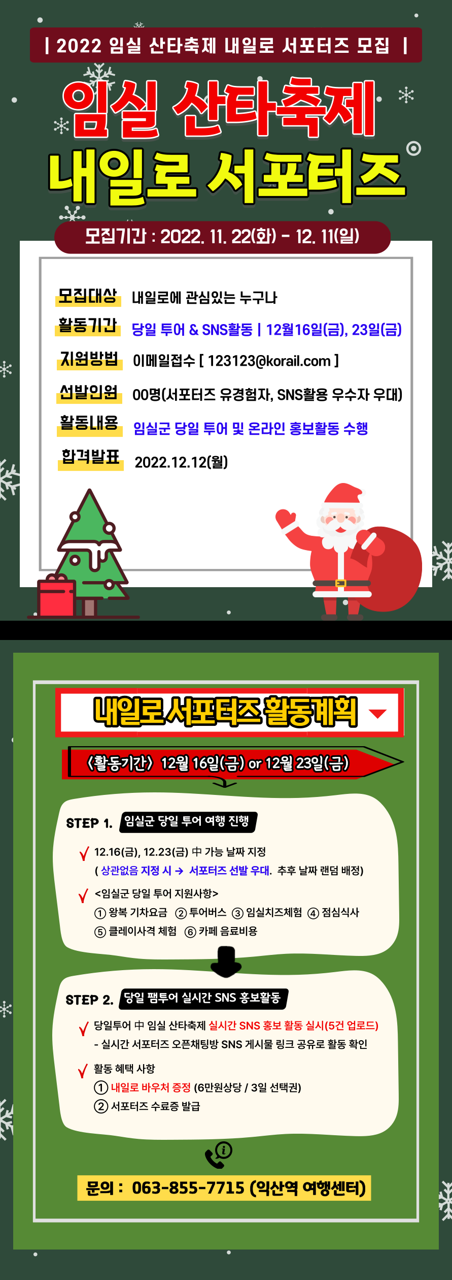 2022 한국철도공사 임실 산타축제 내일로 서포터즈 모집