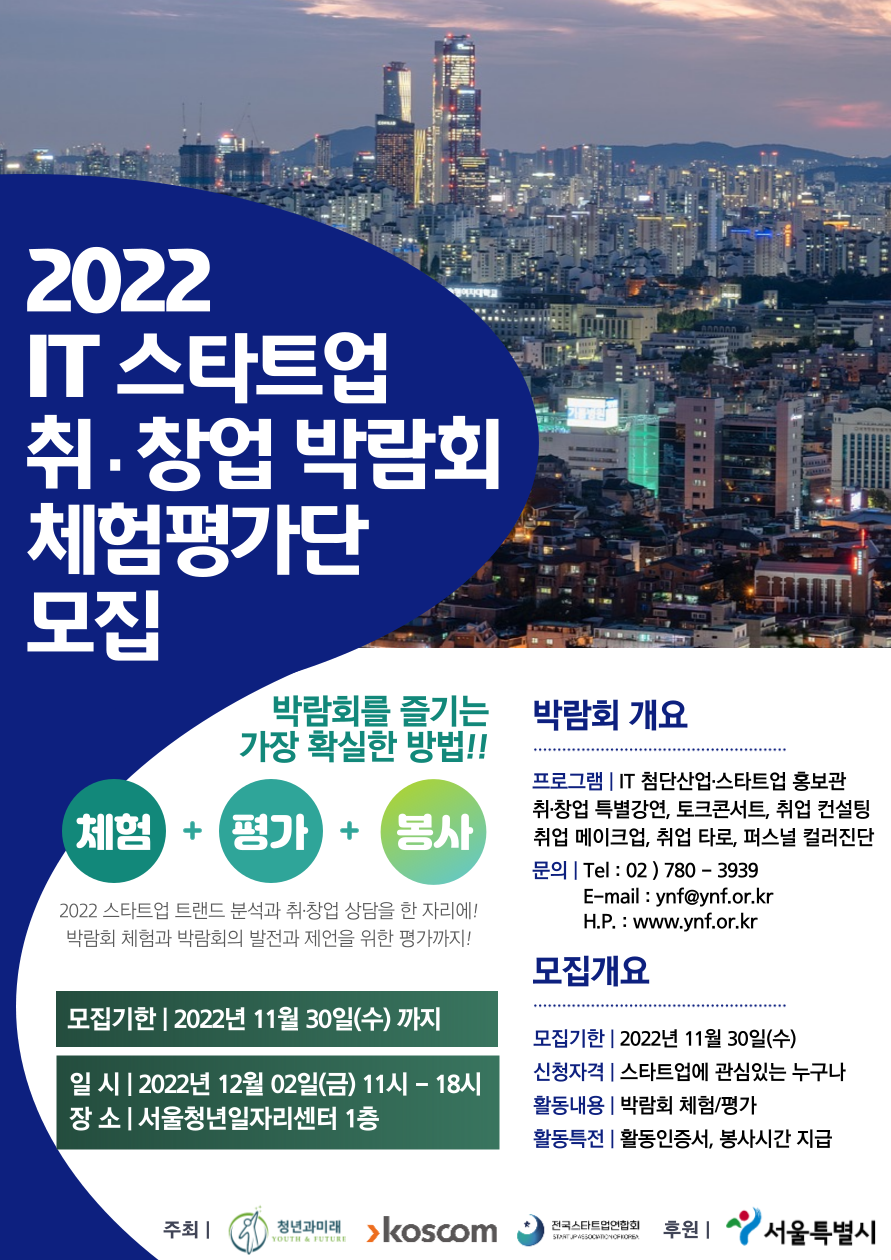 2022 IT 스타트업 발전과 청년들의 동반성장을 위한 <2022 IT 스타트업 취 ·창업 박람회>에 참여해주세요!