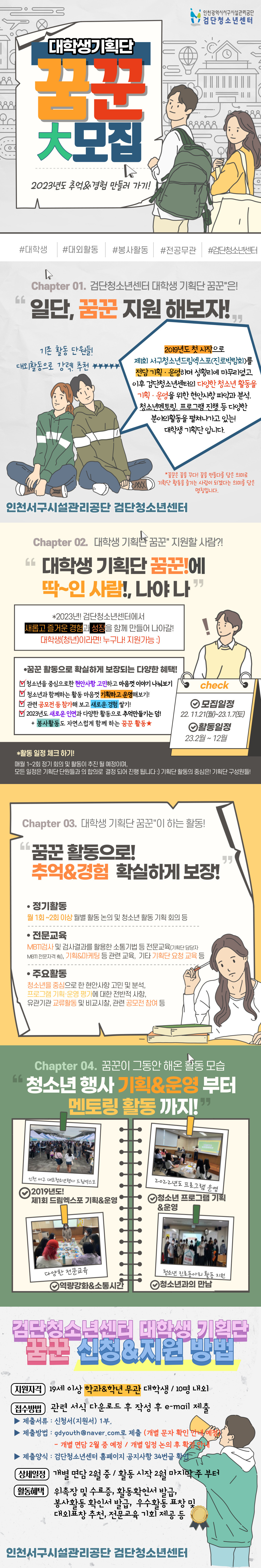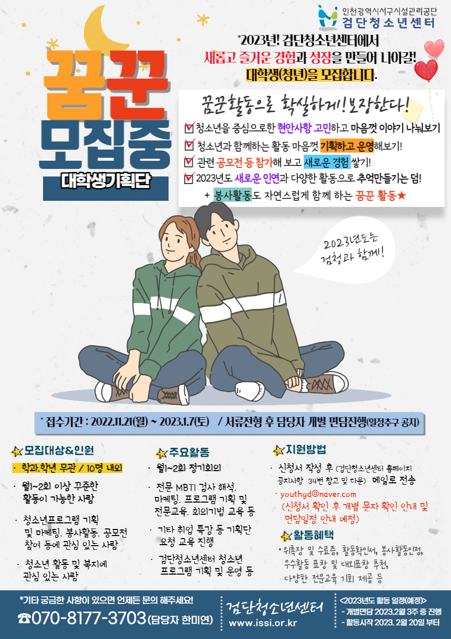 넘쳐나는 다양한 대외활동 속에! 검단청소년센터의 대학생 기획단 꿈꾼! 활동 선택은-! 후회 없는 선택이 될 것입니다 :) (담당자의 자신감!!)