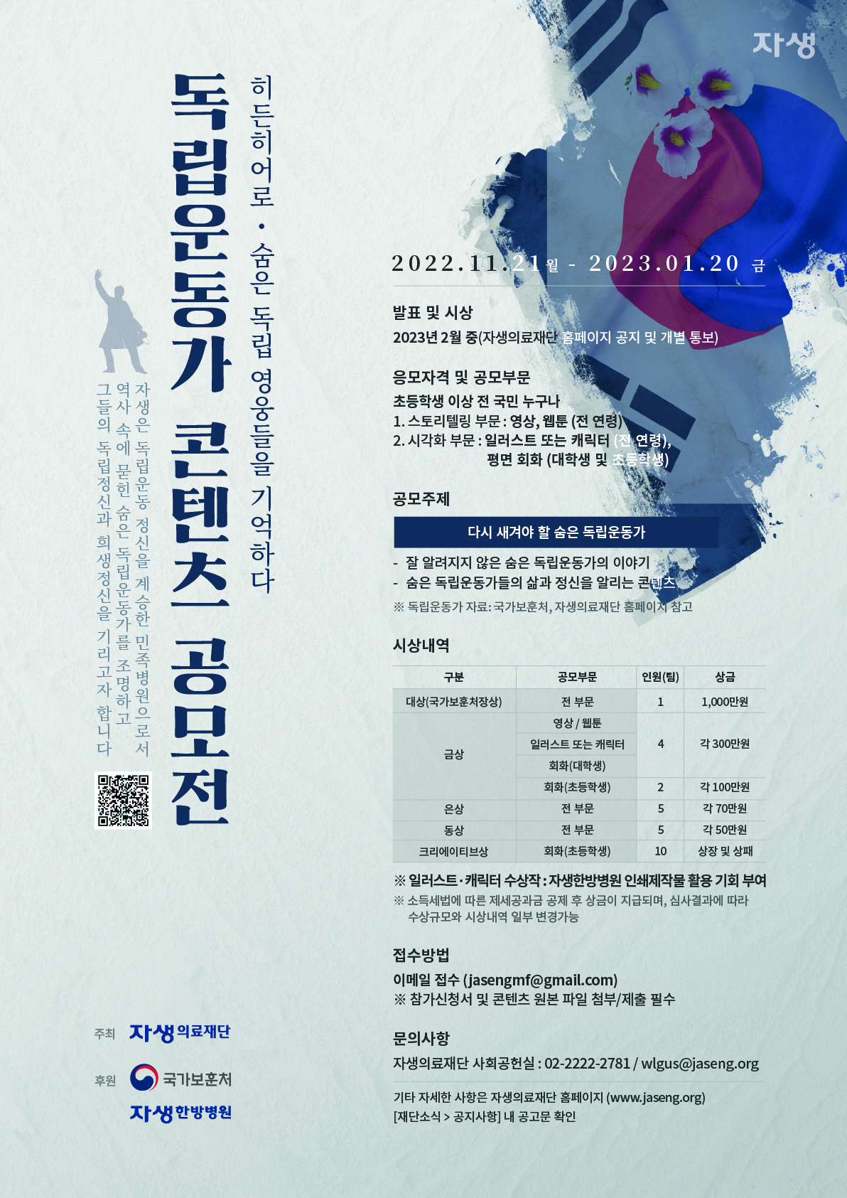 [자생의료재단 X 국가보훈처] 독립운동가 콘텐츠 공모전 – ‘히든히어로, 숨은 독립 영웅들을 기억하다’
