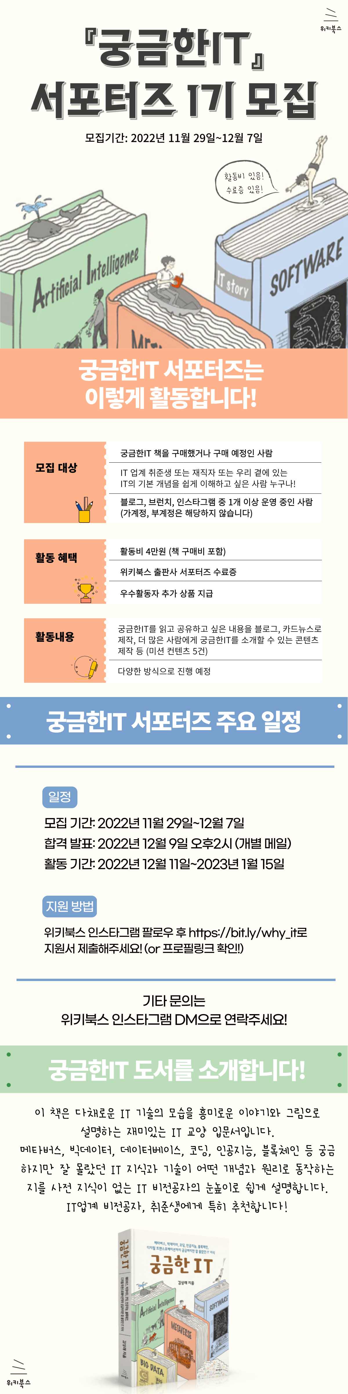 IT에 관심 있는 누구나! ❤️위키북스 ⟪궁금한IT⟫ 서포터즈 1기 모집❤️