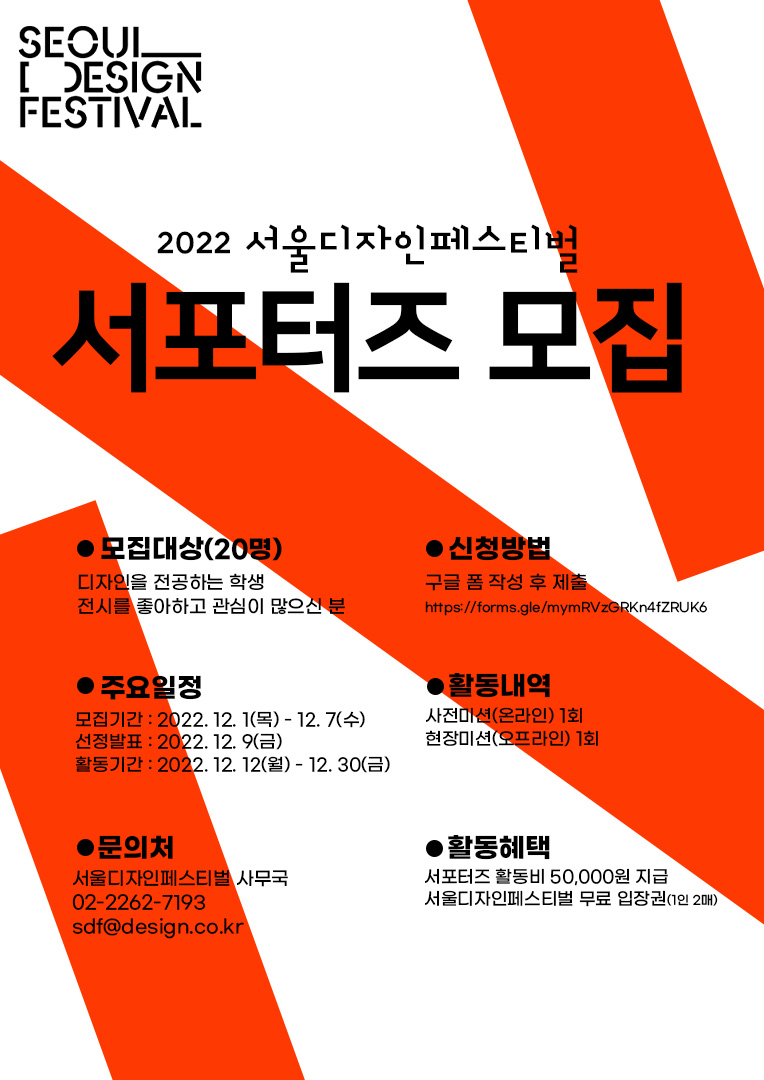 - 2022 서울디자인페스티벌 서포터즈 2기를 모집합니다!