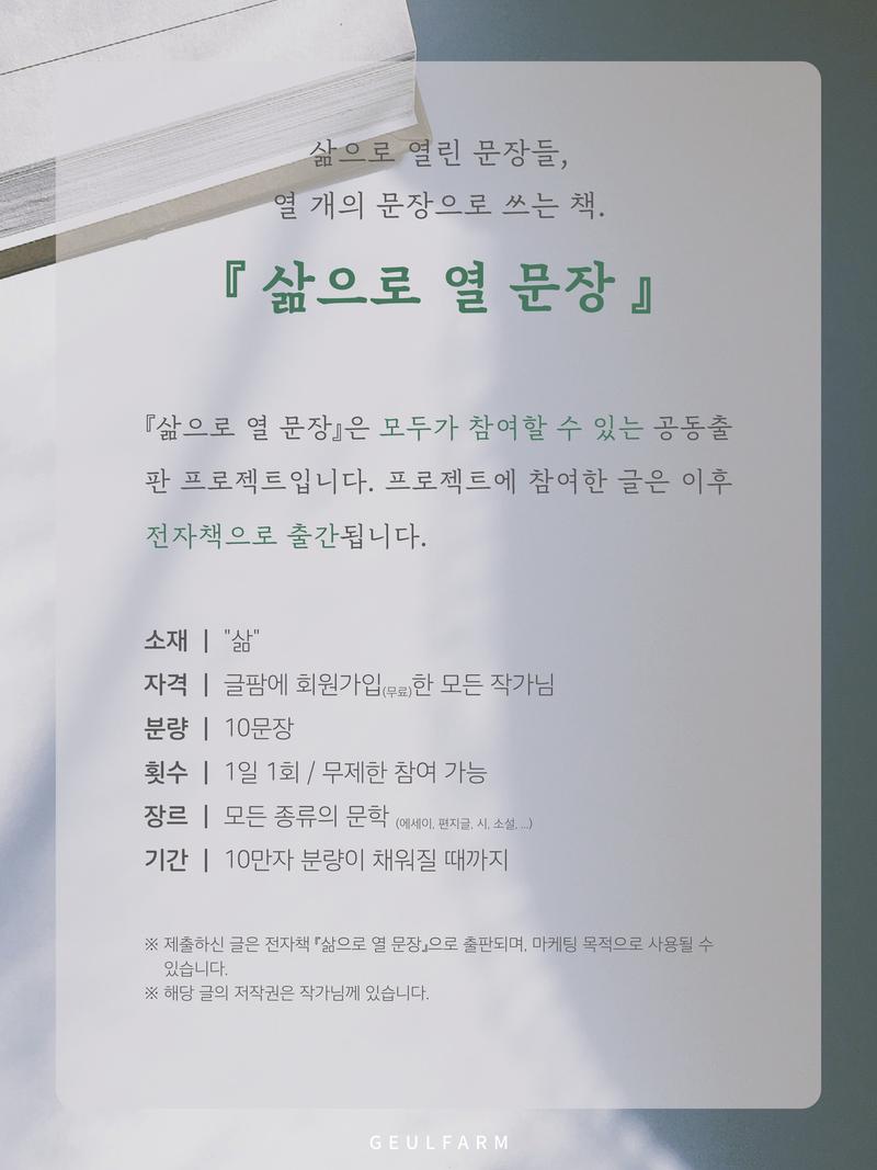 공모전명 전자책 공동출판 프로젝트 『삶으로 열 문장』