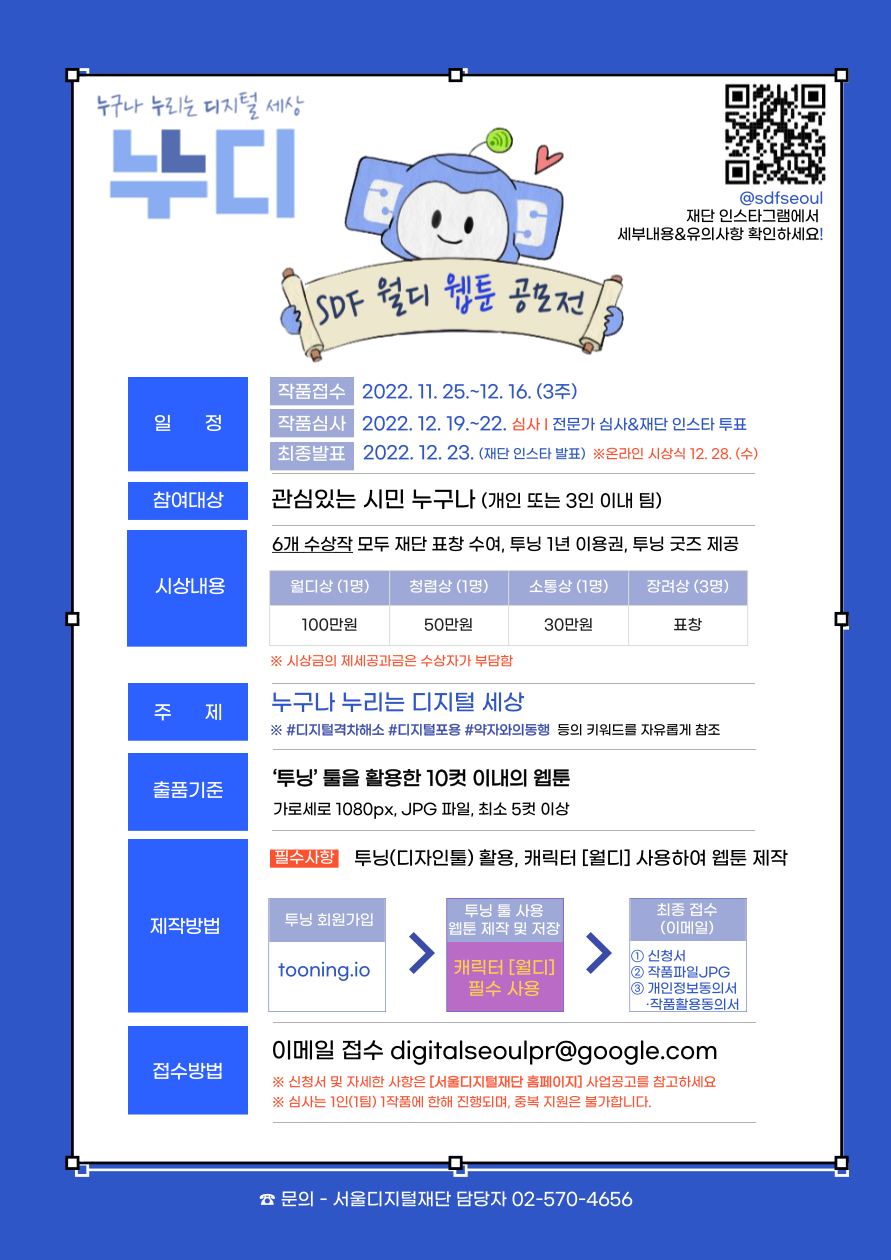 * 제출 시 이메일 제목 형식 : SDF 월디 웹툰 공모전 신청서(이름).zip