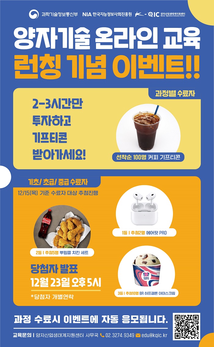 - 교육 대상 : 양자기술에 관심있는 누구나 (무료교육)