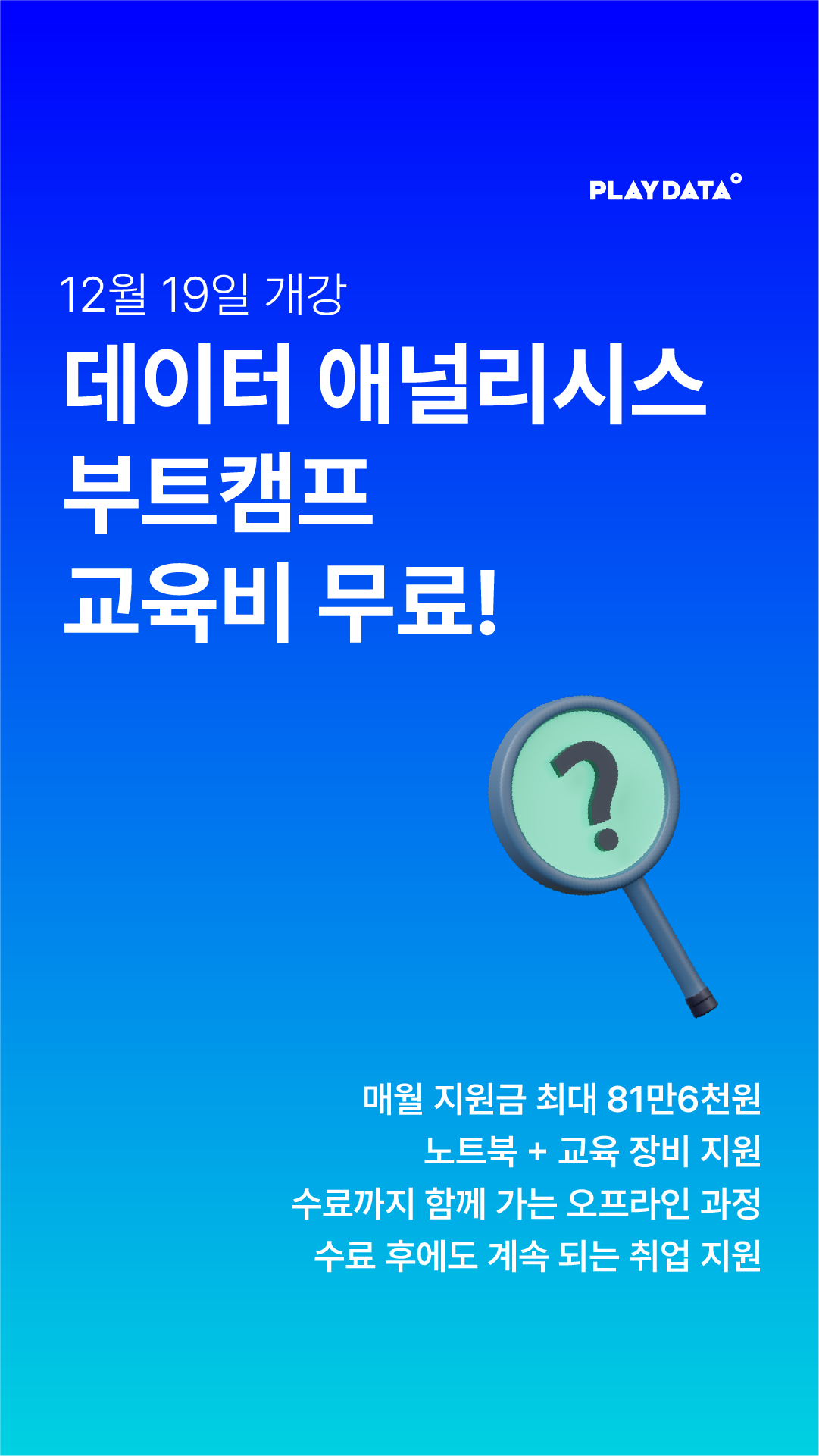 ■ 교육 문의 전화 : 02-754-7302(1번) 실시간 채팅 상담 : https://playdata.channel.io