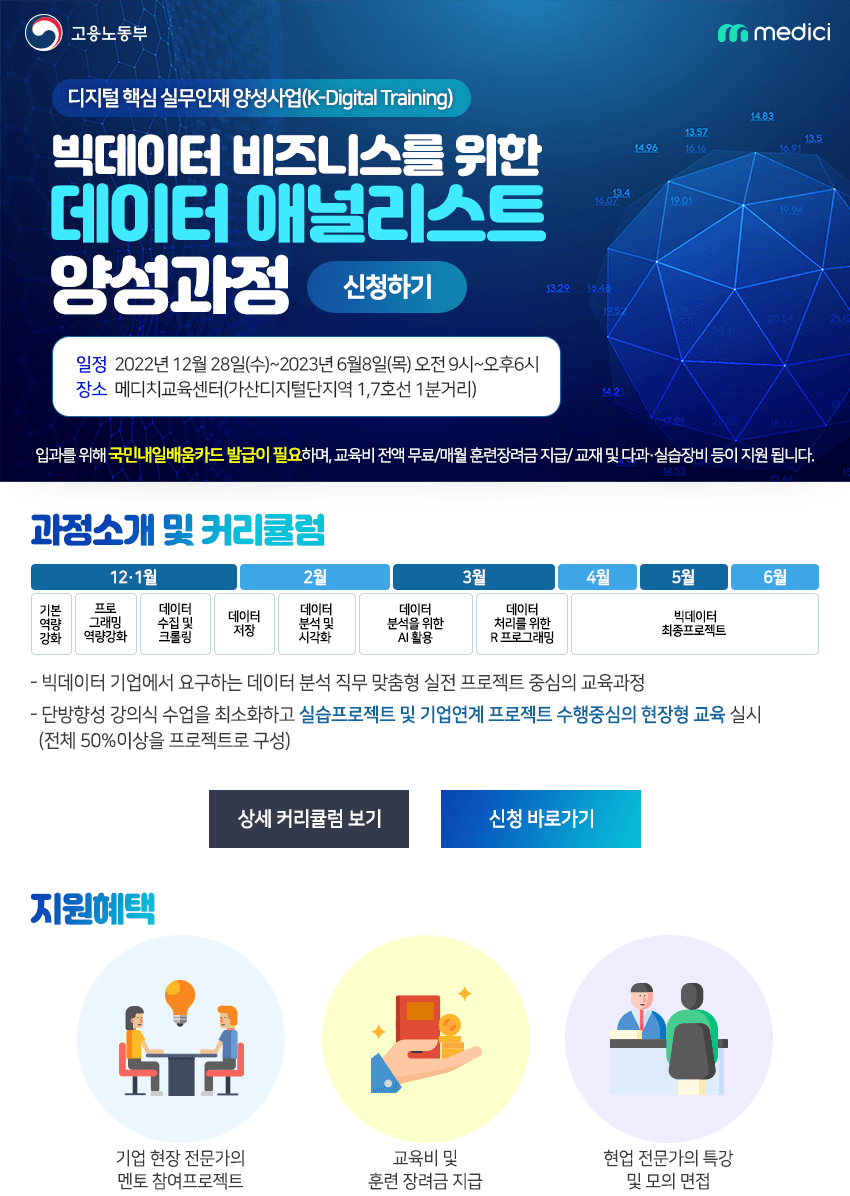 - 빅데이터 분야로 진출하고자 하는 자로 교육 수료 후 6개월 이내 취업이 가능한 자