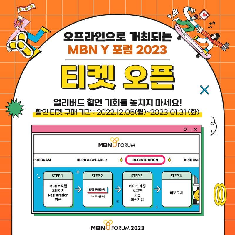 💌얼리버드 할인 기간 - 2022년 12월 5일(월) – 2023년 1월 31일(화) 💌자세한 사항은 MBN Y 포럼 공식 홈페이지를 확인해 주세요. http://mbnforum.co.kr/Contents.asp?LoadPage=Registration