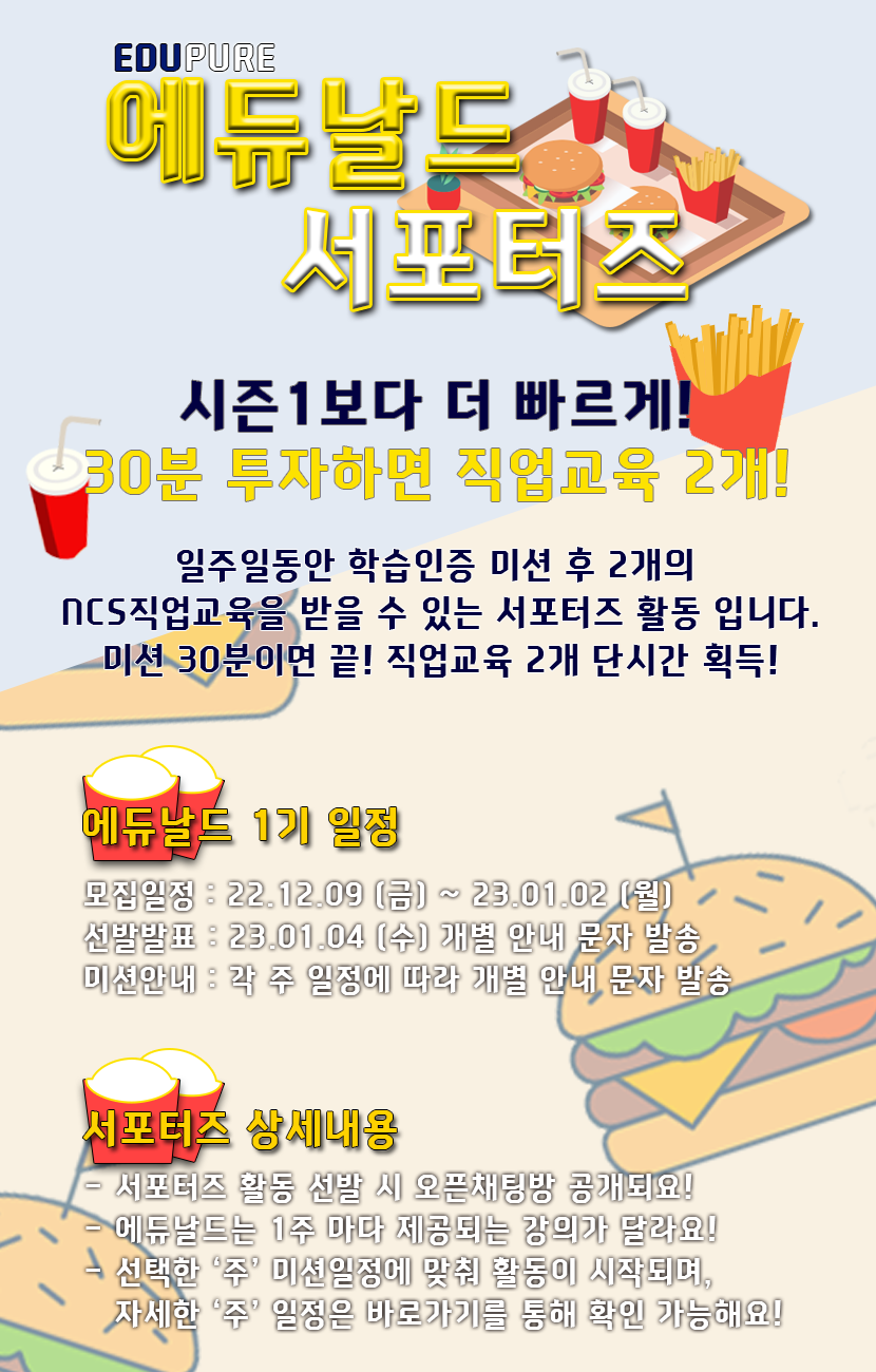 공기업 취업대비하여 단 1주만에 NCS직업교육 강의를 무료로 받을 수 있는 에듀날드 서포터즈 이벤트를 소개합니다🍟