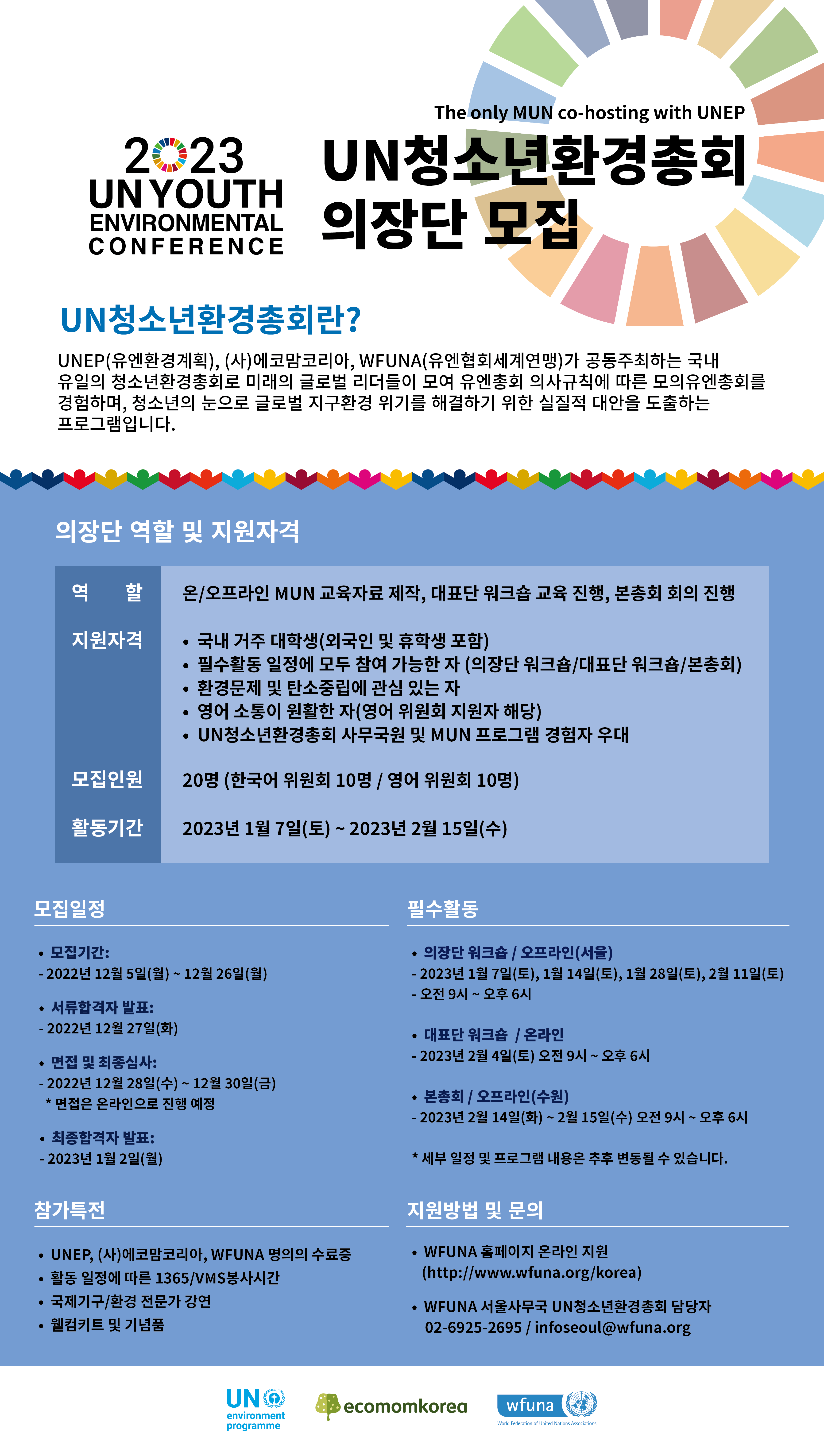 🌏WFUNA와 유엔환경계획, 에코맘코리아가 함께하는 "2023 UN청소년환경총회" 의장단을 다음과 같이 모집합니다!