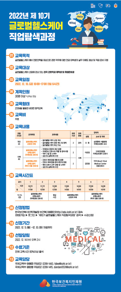 교육명: 2022년 제10기 글로벌헬스케어 직업탐색과정