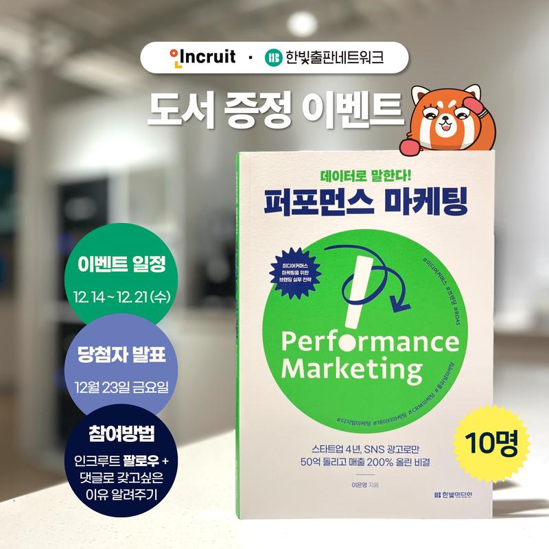 인크루트와 한빛미디어가 총 10분에게 '데이터로 말한다 퍼포먼스 마케팅' 도서 1권을 증정합니다!