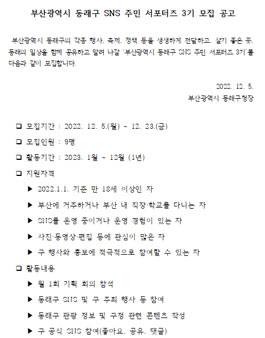 부산광역시 동래구 SNS 주민 서포터즈 3기 모집