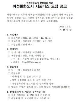 서산시 여성친화도시 서포터즈 모집