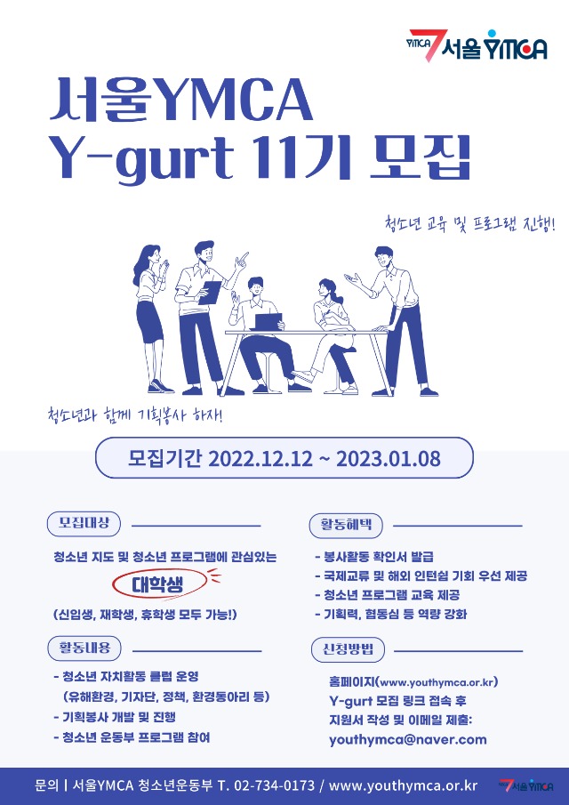 서울YMCA 2023 대학생자원지도자클럽 Y-gurt 11기 모집