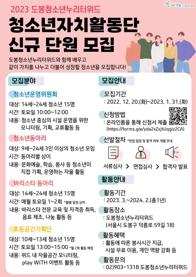 ● 문의 사항 - 02)903-1318 도봉청소년누리터위드