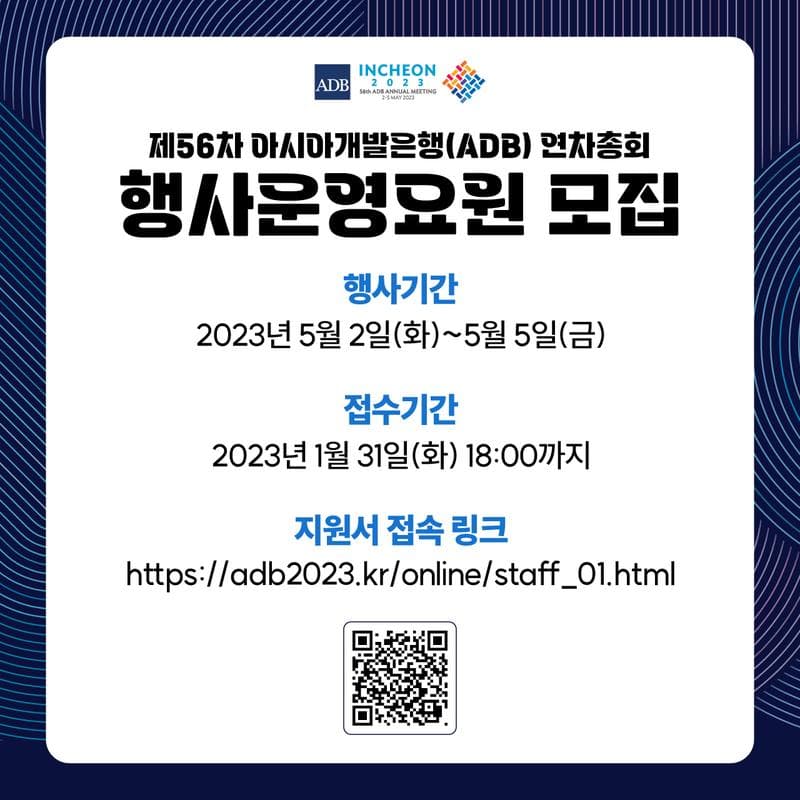 행사 운영요원 지원서 링크: adb2023.kr/online/staff_01.html