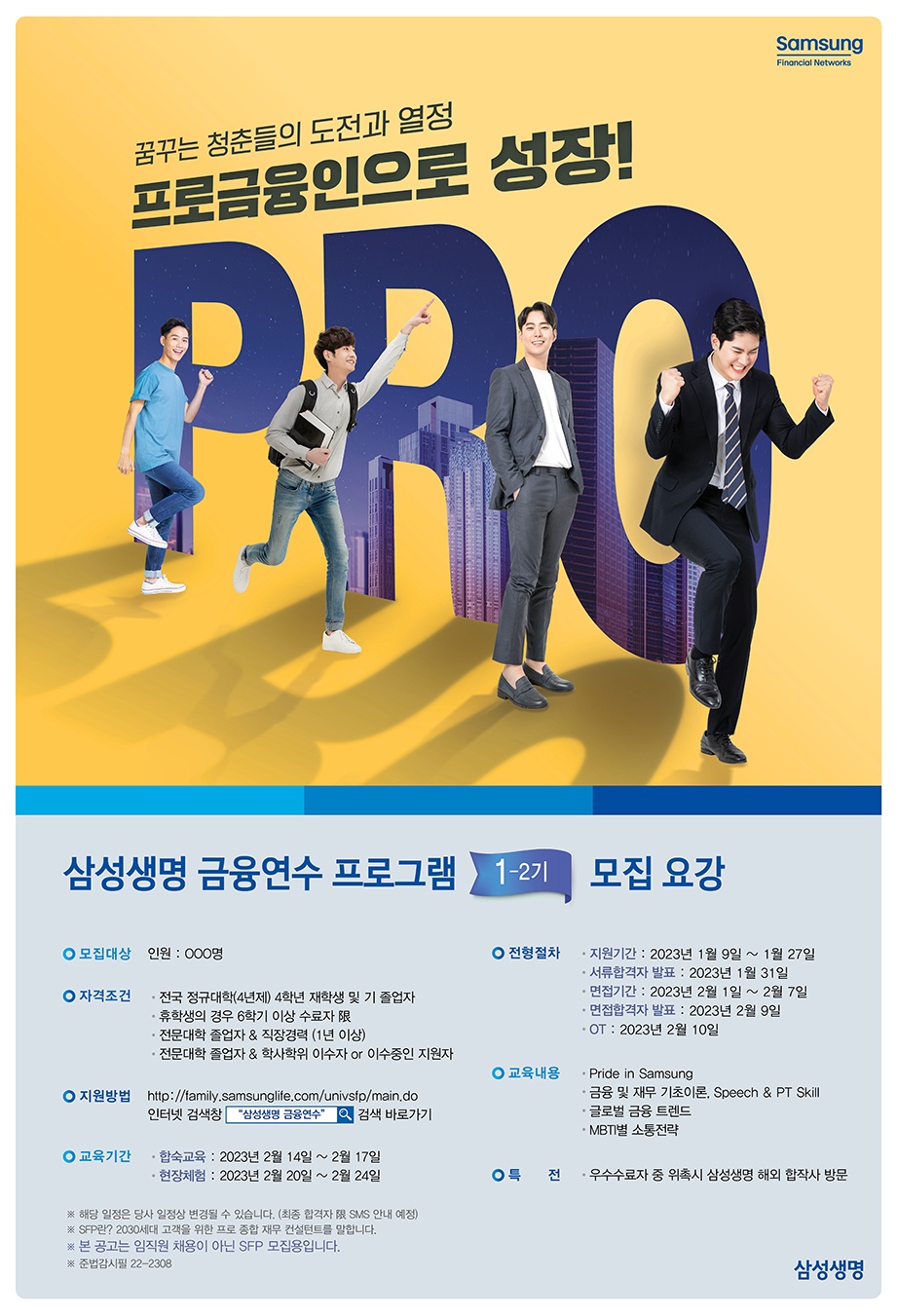 삼성생명 금융연수프로그램은 금융권 취업을 앞둔 대학생들의 희망찬 비전을 위해 다양한 지식과 경험의 장을 만들어 드립니다.