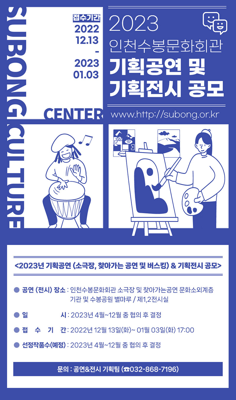 2023년도 수봉문화회관 기획공연 (찾아가는 공연 및 버스킹) 및 기획전시 공고(안)