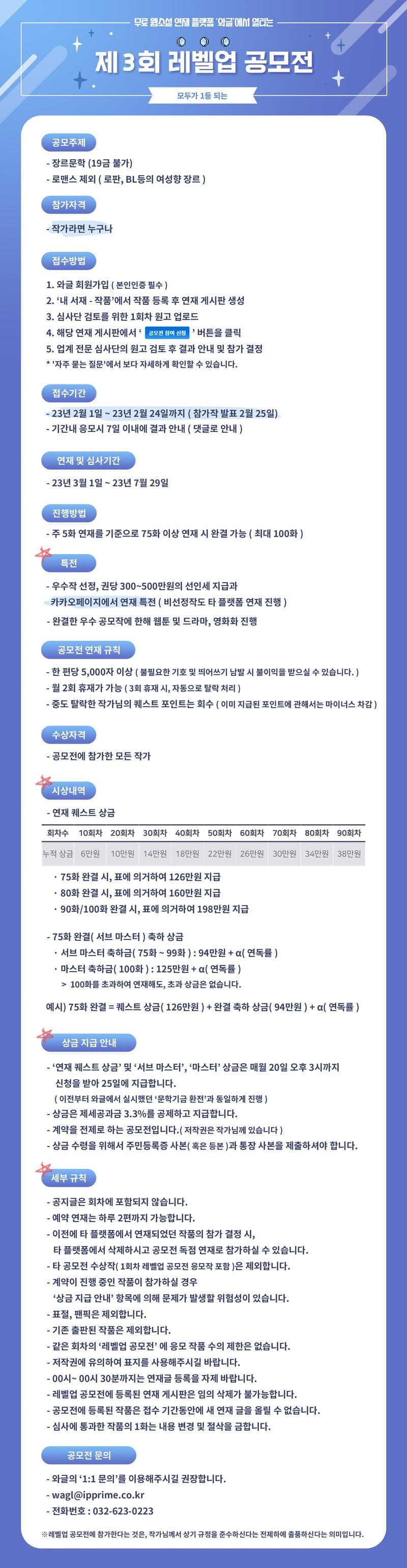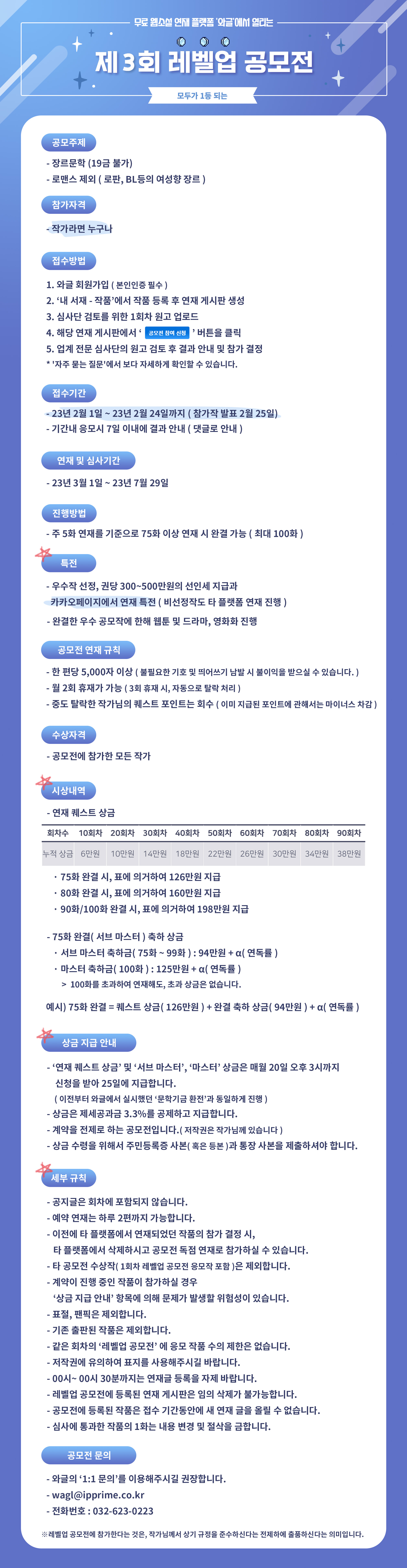 제3회 레벨업 공모전 무료 웹소설 연재 플랫폼 ‘와글’에서 열리는 모두가 1등 되는 제3회 레벨업 공모전