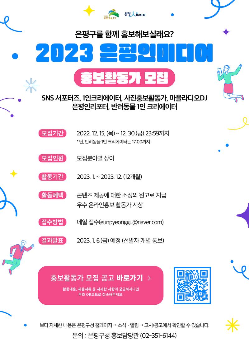 - SNS 서포터즈 / 1인 크리에이터 / 사진 홍보활동가 : 2023. 1. 6.(금) 예정