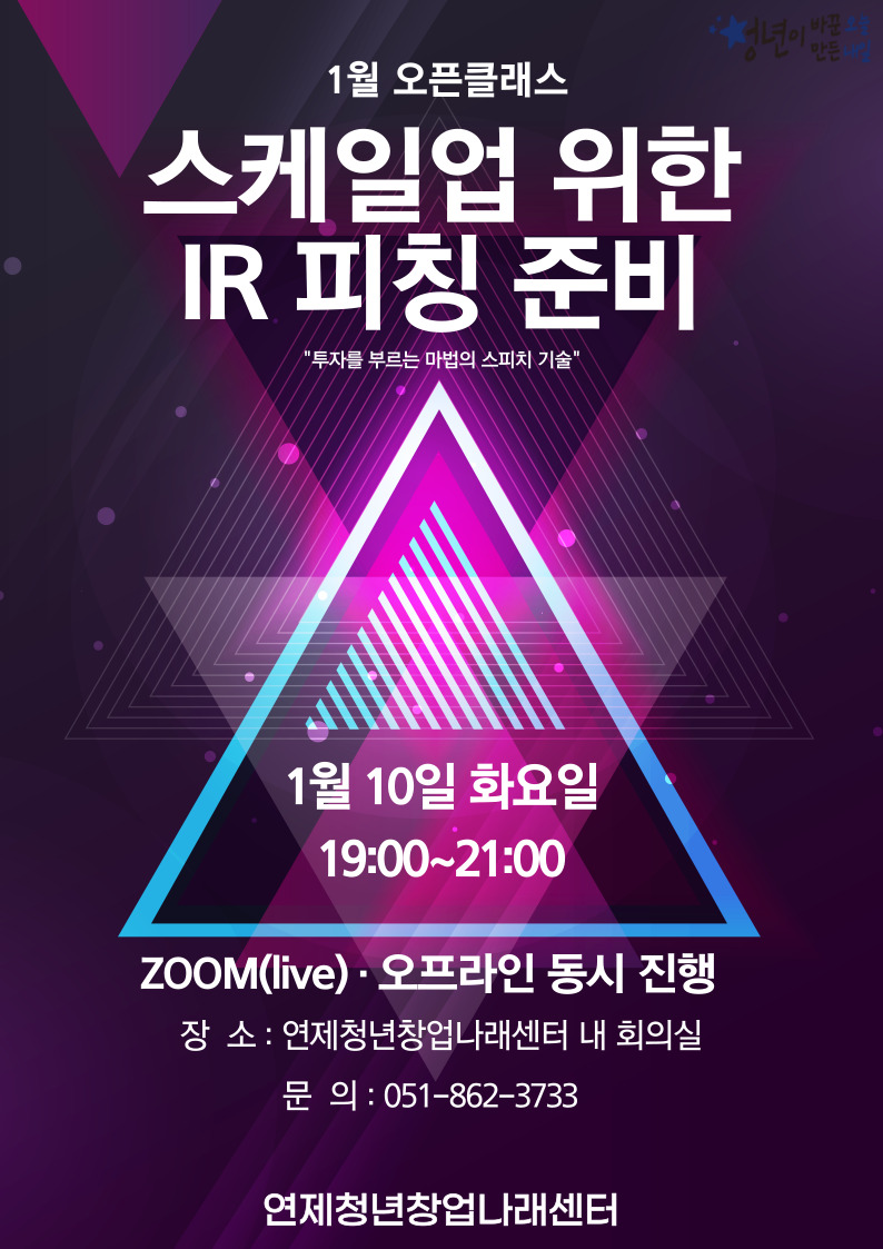1월 오픈클래스는 "투자를 부르는 마법의 스피치 기술" -스케일업을 위한 IR 피칭 준비하기!!