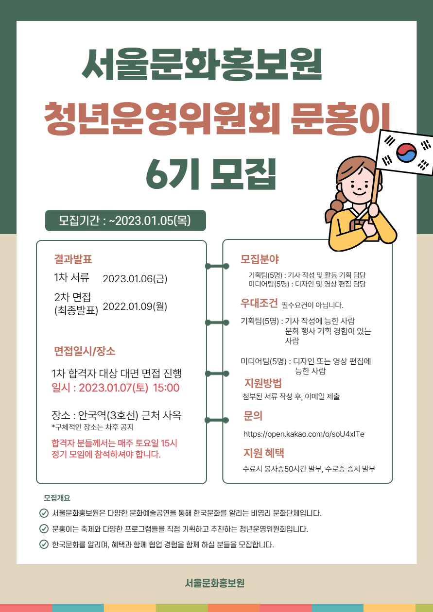 서울문화홍보원 문홍이 6기를 모집합니다!
