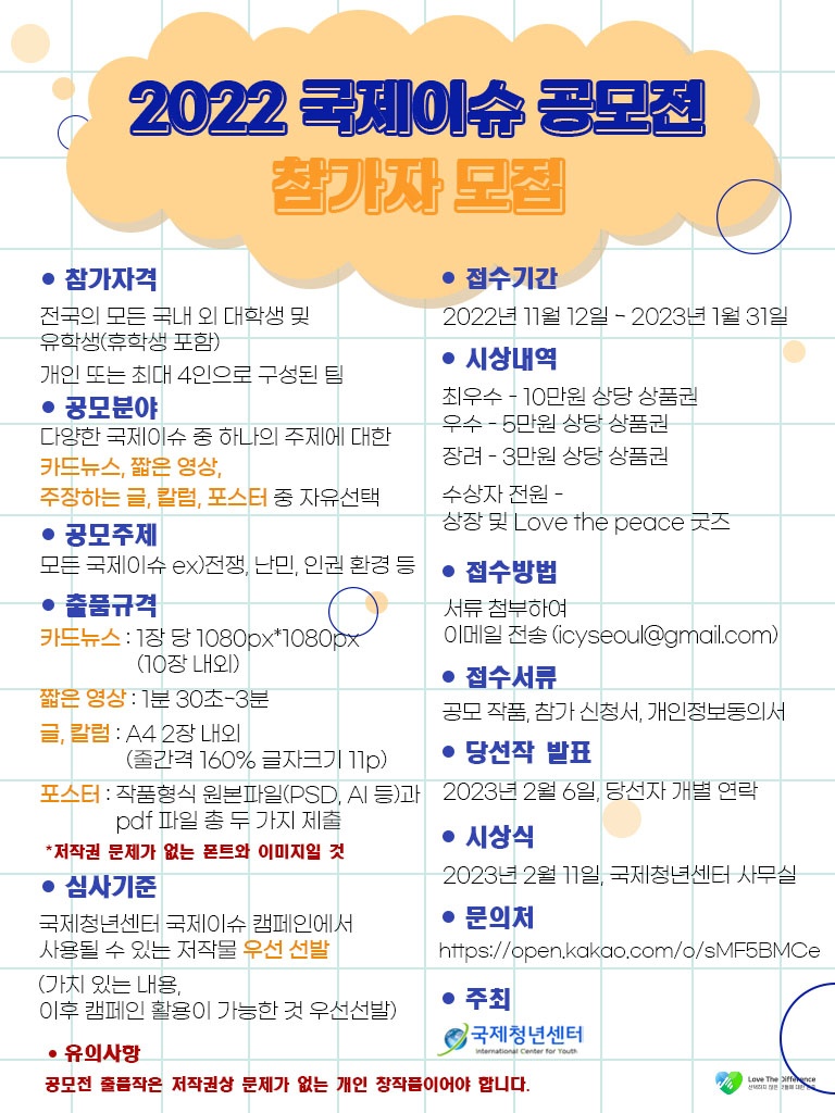 국제청년센터에서 국제이슈 공모전을 진행합니다!