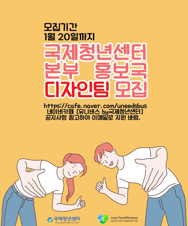 보다 자세한 사항은 국제청년센터 홍보국원 모집 : 네이버 카페 (naver.com)를 참조하세요.