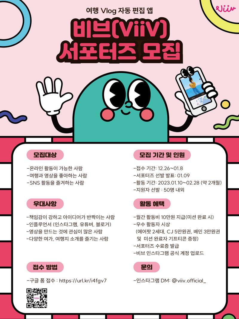 비브와 함께하실 1기 서포터즈단을 모집합니다!