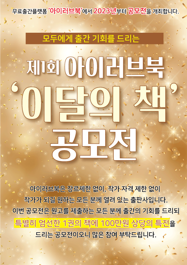 - 무료출간플랫폼 ‘아이러브북’에서 2023년부터 공모전을 진행합니다.