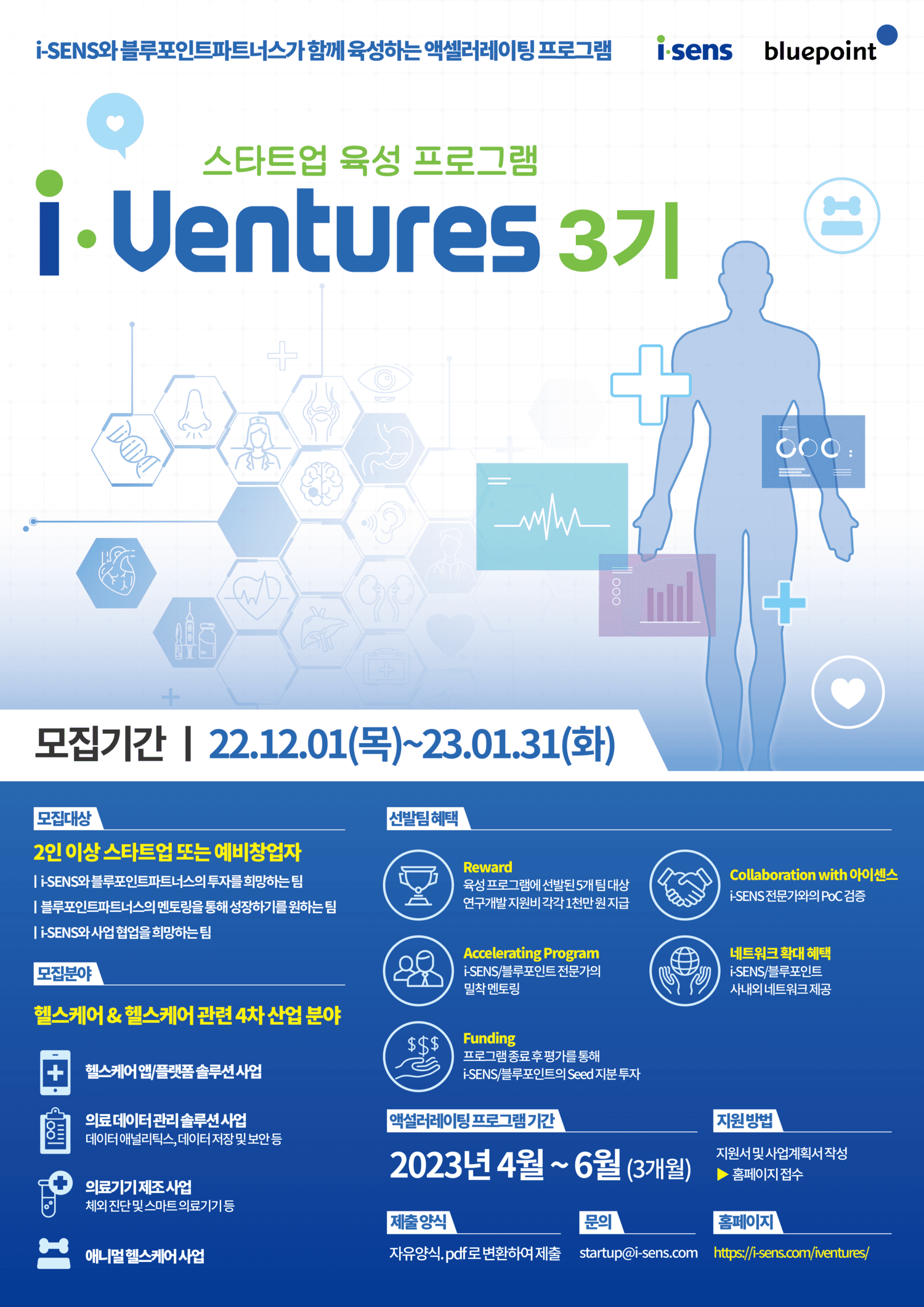 문의사항 : startup@i-sens.com 더 자세히 알아보고 싶다면? https://i-sens.com/iventures/