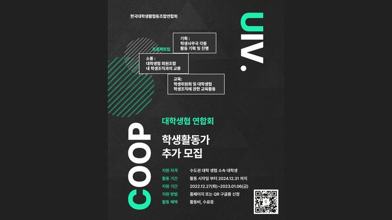 ■ 지원 자격 대학생협이 있는 34개 대학의 대학생(홈페이지 참조) ※대학생협연합회 사무실(서울)에 올 수 있는 대학생들만 모집합니다.