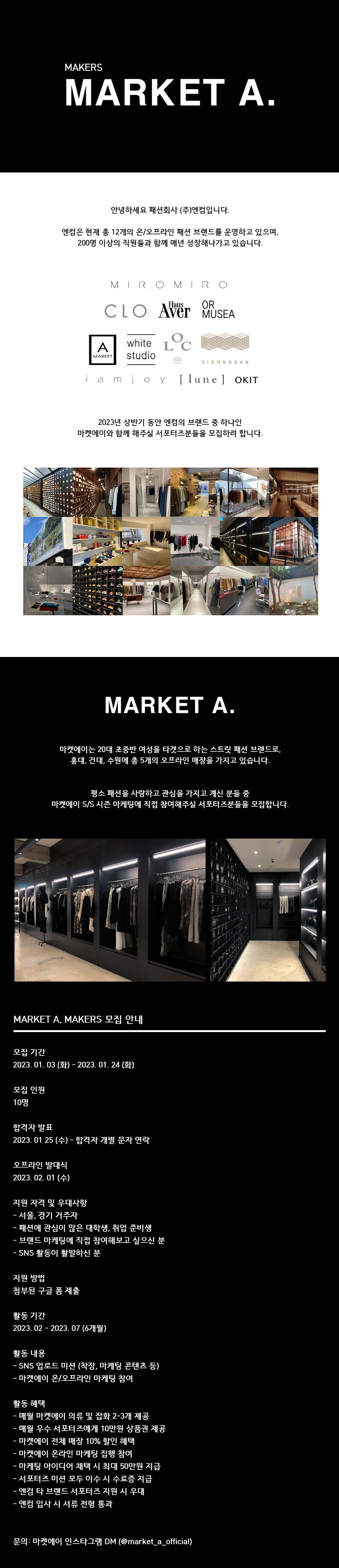 [MARKET A. MAKERS] 패션 마케팅 서포터즈 1기 모집