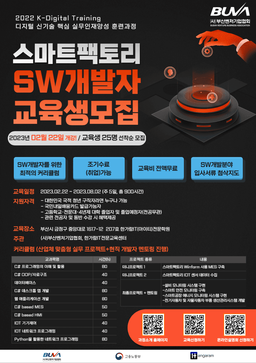 [K-Digital Training] 디지털 신기술 핵심 실무인재양성 훈련과정 스마트팩토리 SW개발자 양성과정