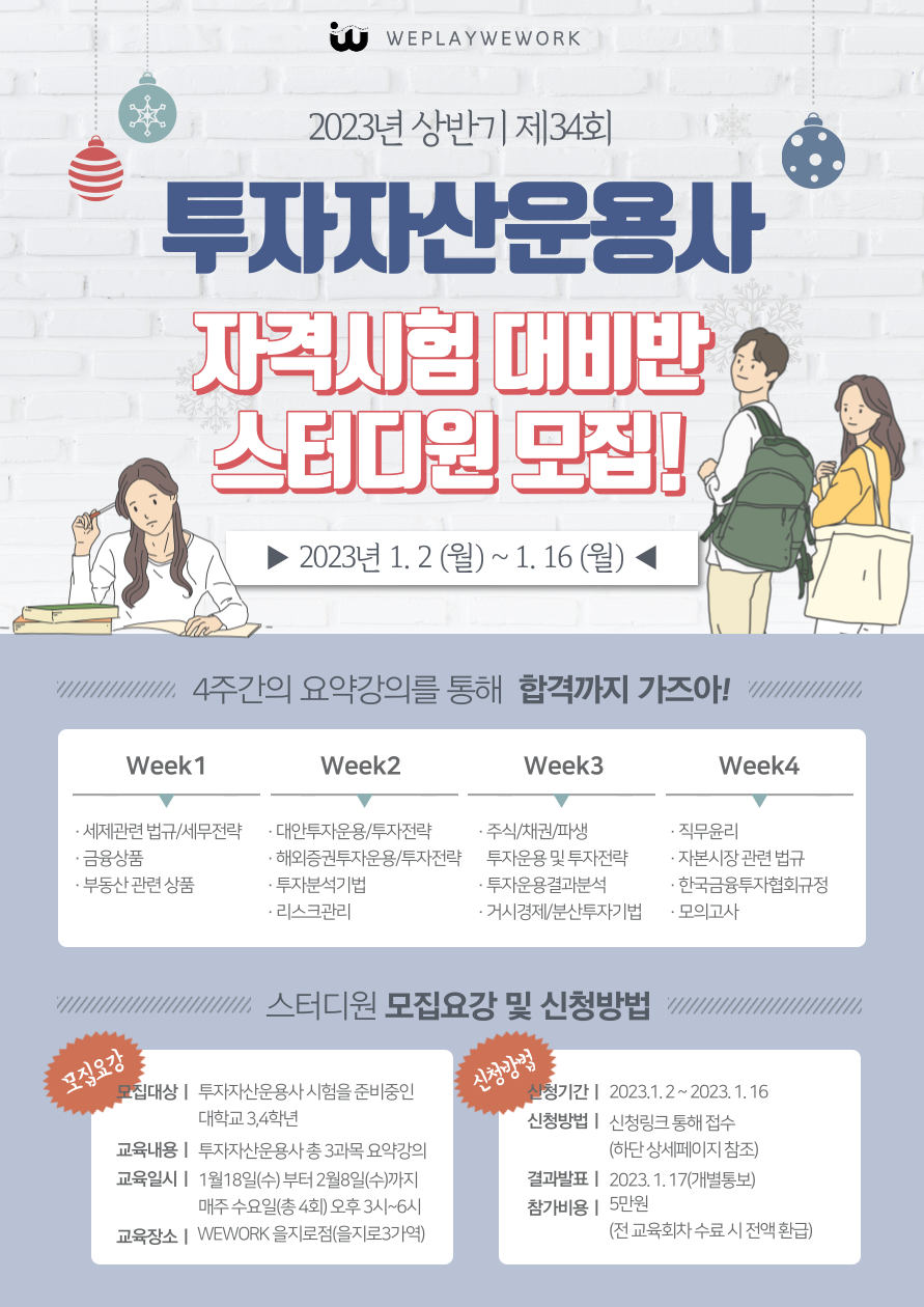 투자자산운용사를 준비하는 취준생을 위한 스터디반 모집!