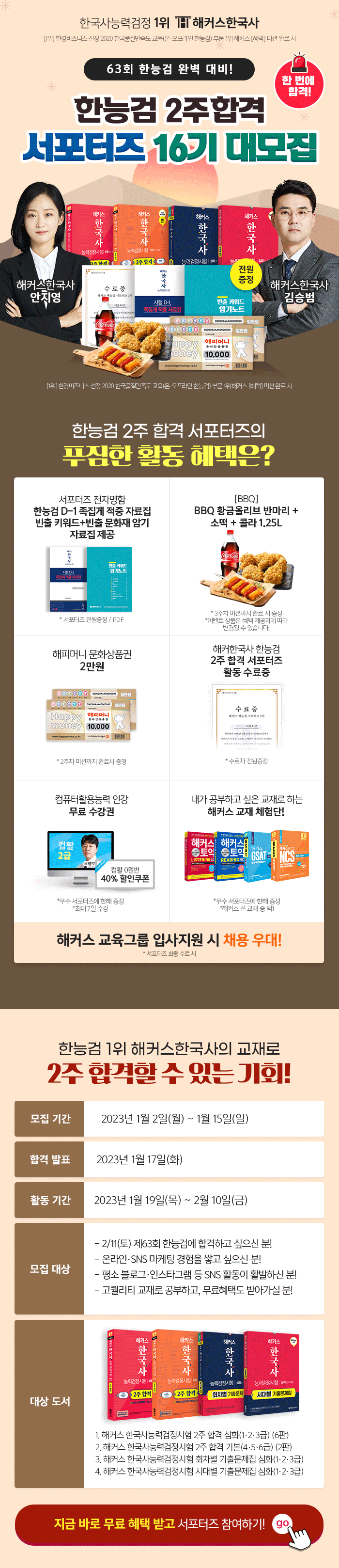 [해커스한국사 한능검 2주 합격 서포터즈 16기 모집 ]