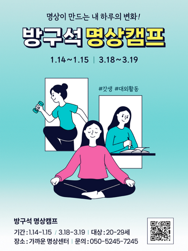 <방구석 명상캠프>에서는 과학적으로 검증된 명상 방법을 통해 당신이 갓생을 살 수 있도록 1:1 맞춤형 코칭을 해드립니다.