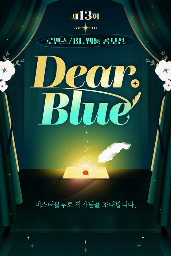 안녕하세요. 미스터블루입니다. 제 13회 미스터블루 “Dear. 블루” 웹툰 공모전을 개최합니다. 작가님들의 많은 성원 부탁드립니다.