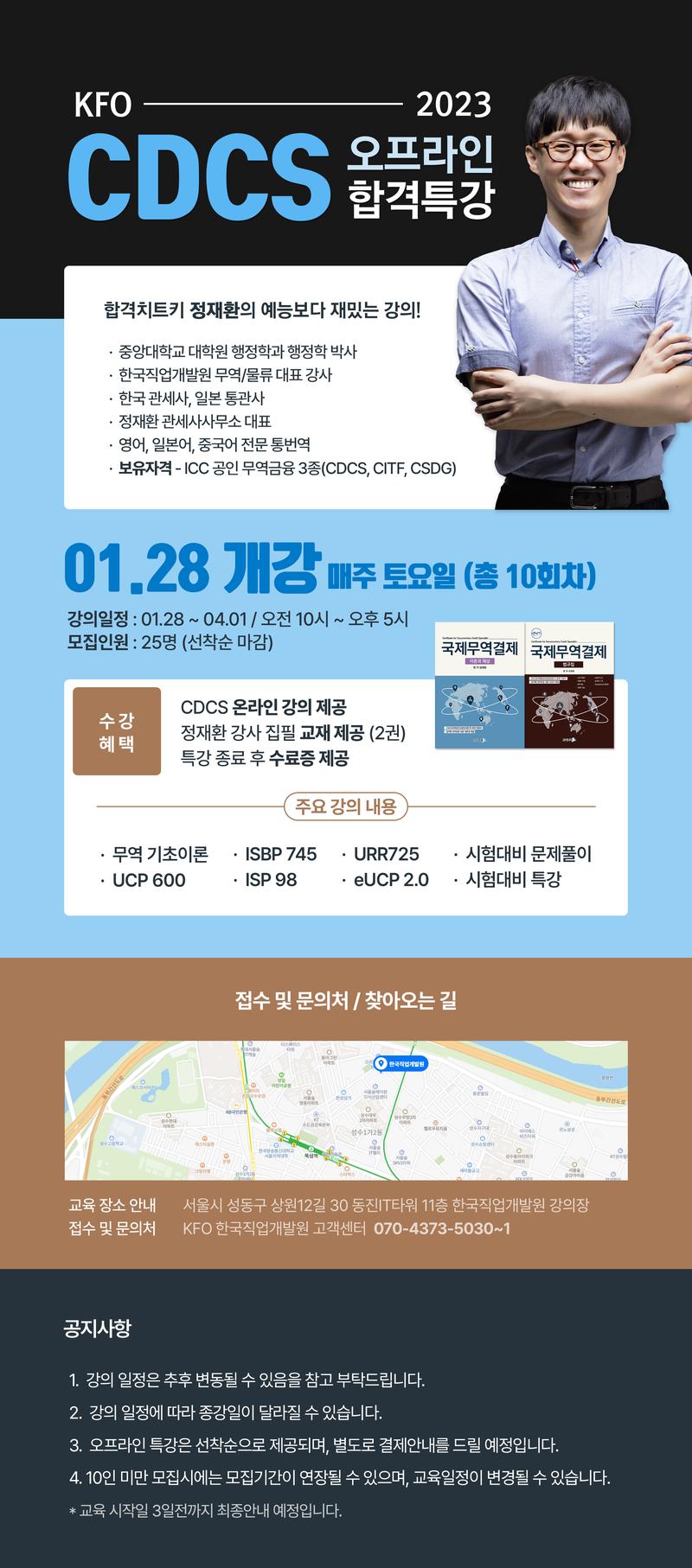 🔥오직 오.프.라.인에서만 느낄 수 있는 뜨거운 열기와 생생한 강의! ✔CDCS 합격까지 직강코스 ✔요점만 담은 핵심 위주 강의 ✔실제 사례를 통한 쉬운 설명 ✔합격후기가 증명하는 스타강사 ▶ 지금 바로 정재환의 CDCS 특급과외 알아보기!