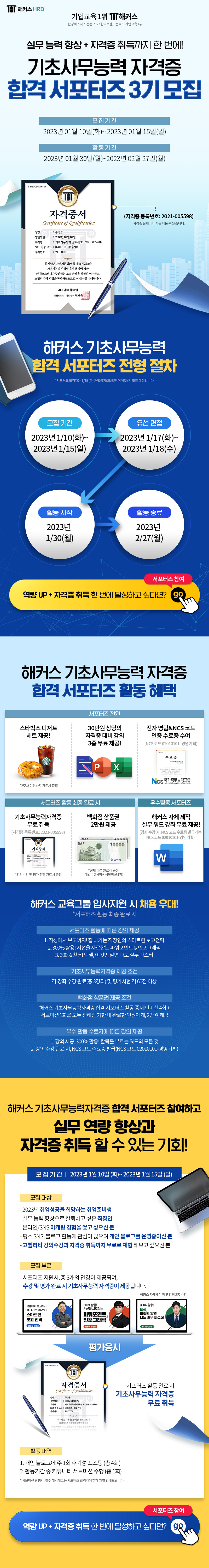 해커스 기초사무능력자격증 합격 서포터즈 3기를 모집합니다. (\~1/15)