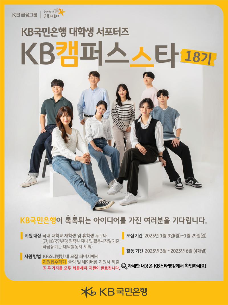당신이 기다려온 최고의 대외활동! KB국민은행 대학생 서포터즈 KB캠퍼스스타 18기 모집을 시작합니다.