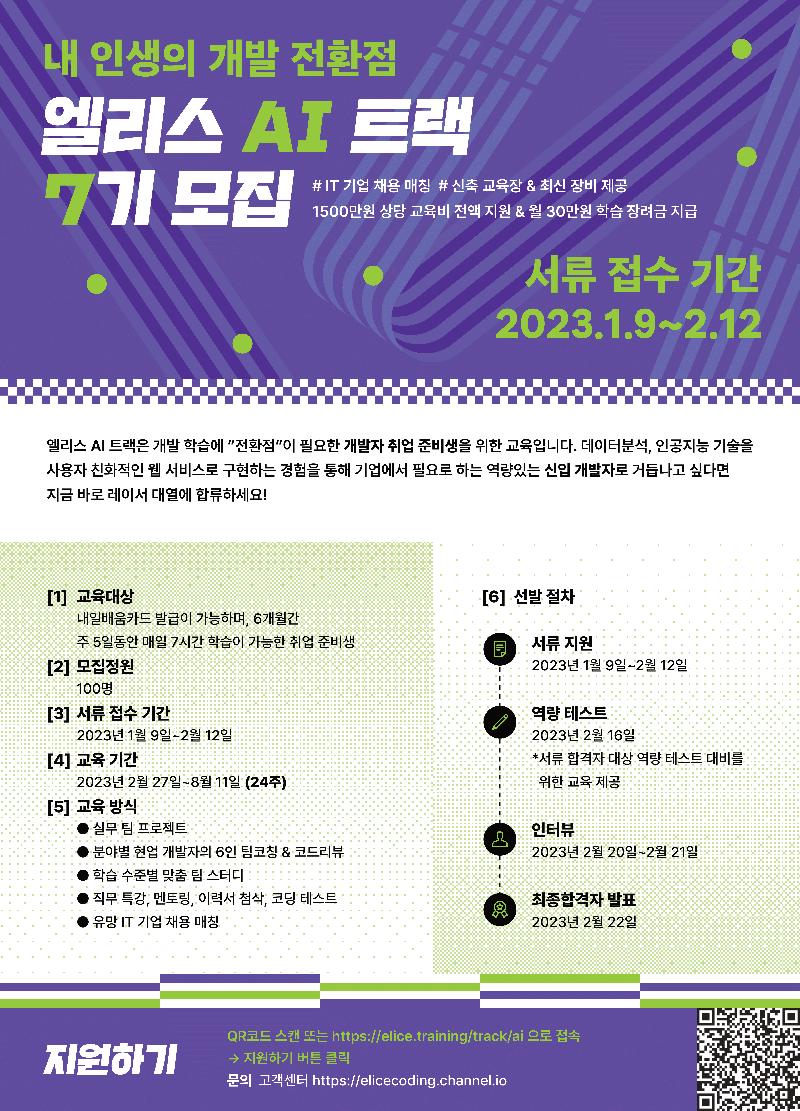 [전액 무료]올해는 꼭 개발자 취업! 엘리스 트랙 AI 7기,SW4기 모집