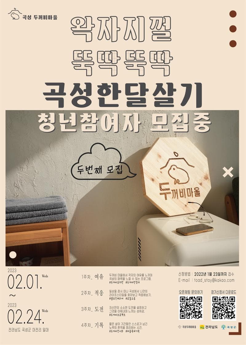 곡성 두꺼비마을 청년한달살기 2기 모집