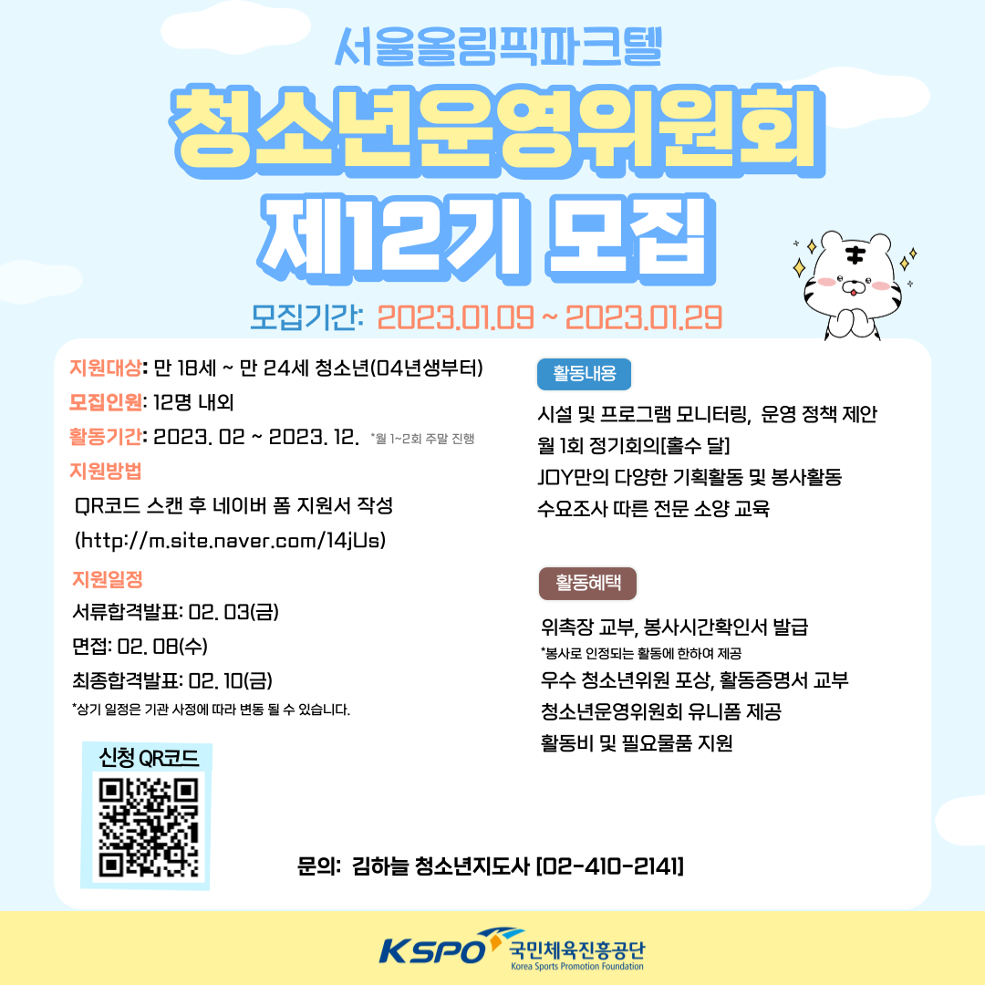 - 관리팀 김하늘 청소년지도사(02-410-2141)