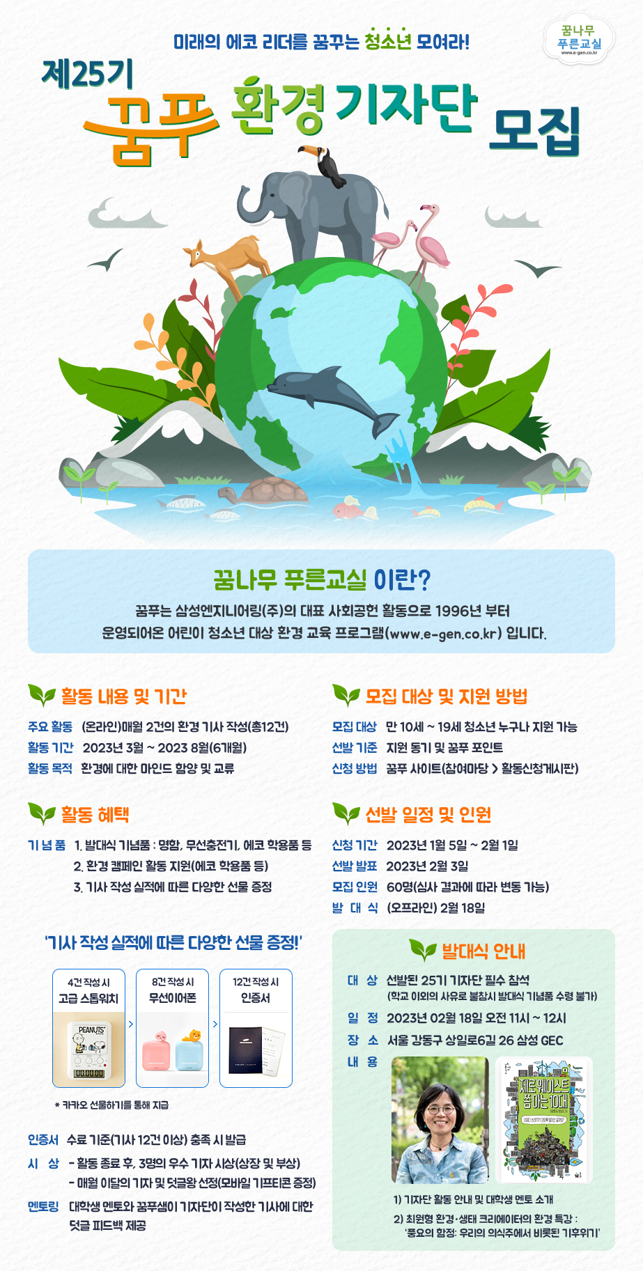 [삼성엔지니어링] 제25기 꿈푸 환경 기자단 모집(\~2.1)