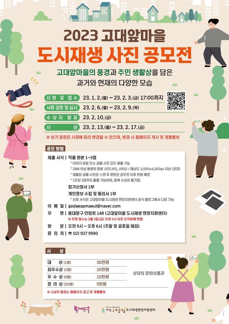 - 우편 : 동대문구 안암로 148 (고대앞마을 도시재생 현장지원센터)