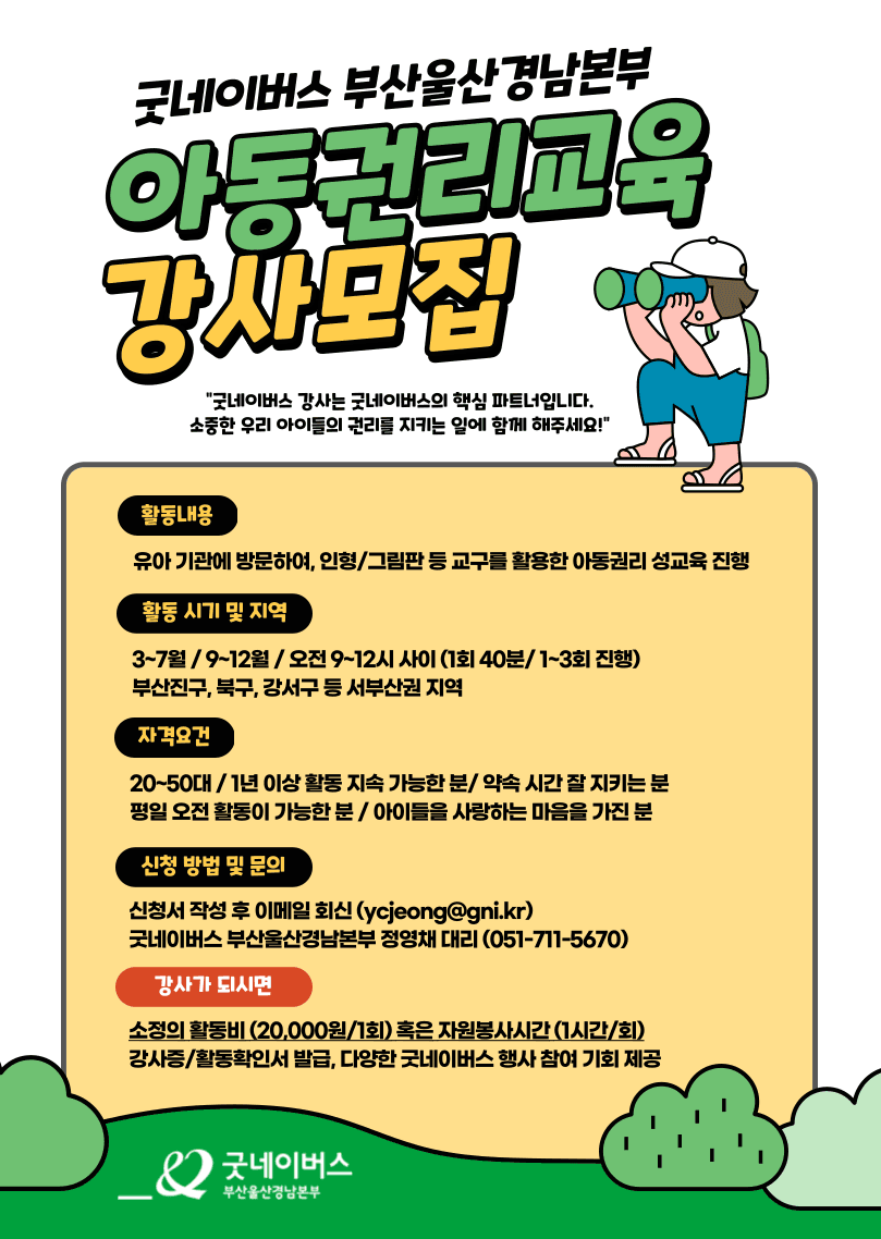 ♥ 모집 내용: 굿네이버스 부산울산경남본부 아동권리 교육강사
