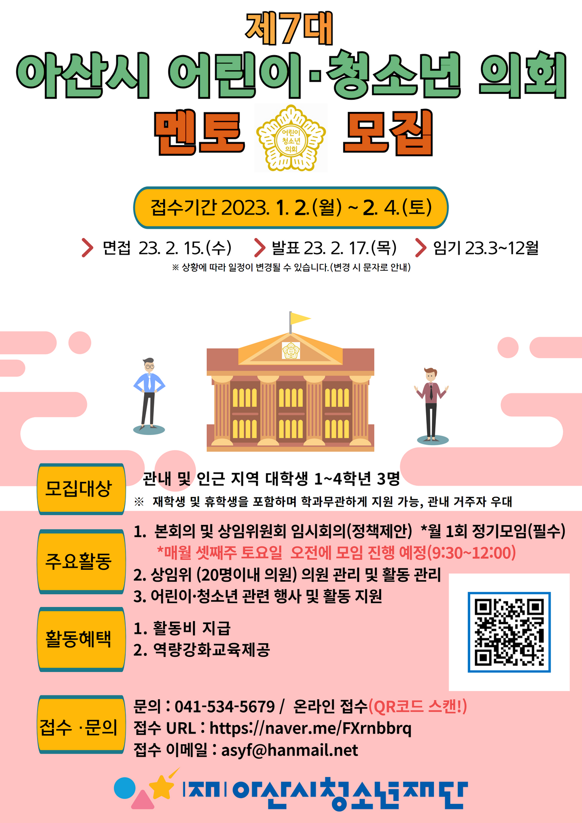제7대 아산시 어린이·청소년의회 대학생 멘토 모집