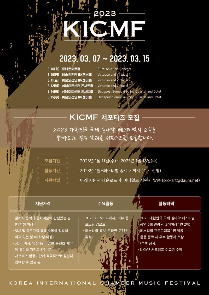 2023 대한민국 국제 실내악 페스티벌의 소식을 발빠르게 널리 알려줄 서포터즈를 모집합니다.